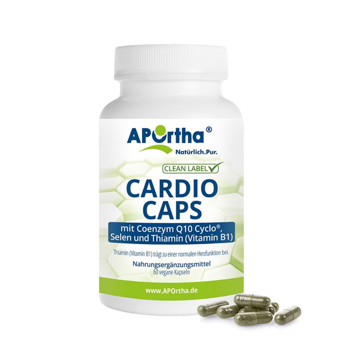 수용성 코엔자임 Q10, 셀레늄 및 심장 비타민 티아민(비타민 B1)이 함유된 APOrtha ® Cardio Caps 60개 비건 캡슐