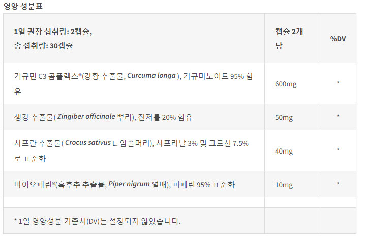 - 600mg 커큐민 C3 콤플렉스® – 커큐미노이드 95% 함유